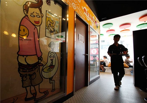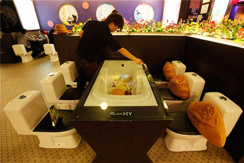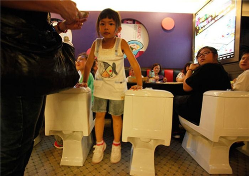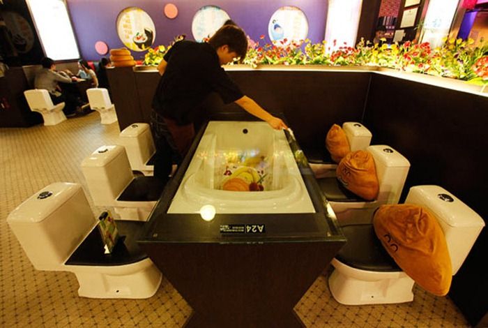 នៅខេត្តShezhenប្រទេសចិនម្ចាស់ភោជនីយដ្ឋានបង្គន់Wang Tzi-Weiបានបើកហាងដែលមាន