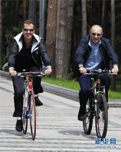 Dmitry Medvedev (L)ប្រធានាធិបតីរុស្សី និង Putin នាយករដ្ឋមន្រ្តីរុស្សី (Xinhua/Reuters Photo)