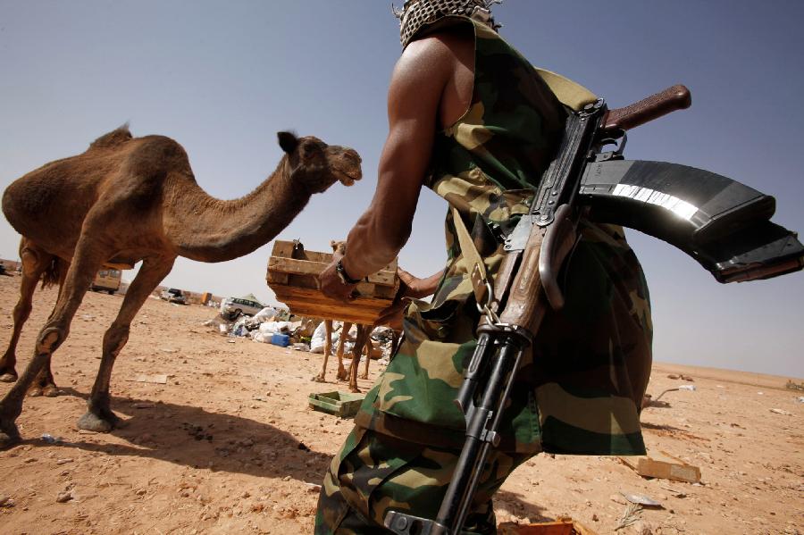 កងកម្លាំងប្រឆាំងនឹងលោកកាដាហ្វីកំពុងឲ្យចំណីរដល់សត្វអូដ្ឋ។