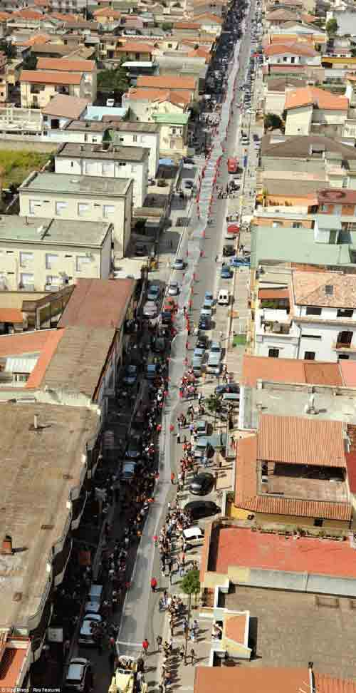 មនុស្សរាប់ពាន់នាក់បានចេញទៅដងផ្លូវ Casal di Principe ដើម្បី