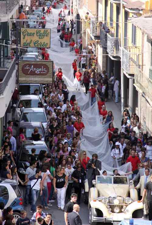 កូនក្រមុំ Elena De Angelis ត្រូវការអ្នកជំនួយ៦០០នាក់ដើម្បីកាន់ស្បៃដ៏វែងរបស់នាង។