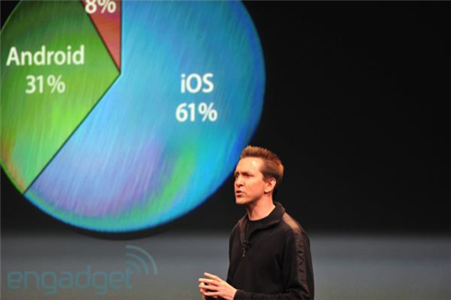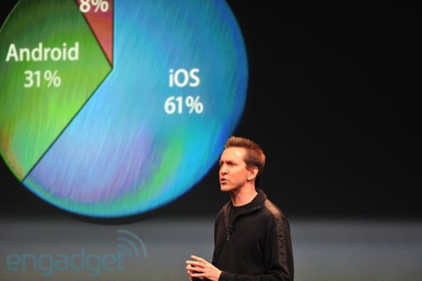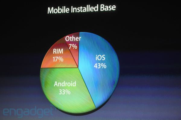 iOS is now the number one mobile operating system, 43 percent compared to Android's 33 percent as of the July ComScore number Apple is quoting.