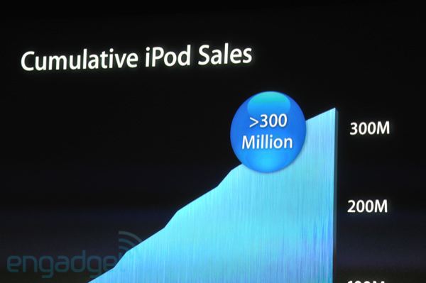 iPods ចំនួនជាង 300 លានគ្រឿង ត្រូវបានលក់ចេញ។