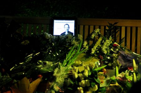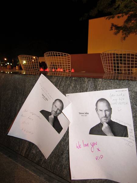 បានមកប្រមូលគ្នានៅតាមបណ្តាទីស្នាក់ការនានាក៏ដូចជាហាងលក់ផលិតផលរបស់ Apple រួមទាំងទីស្នាក់ការធំផងដែរ ដើម្បីធ្វើពិធីរំលឹកវិញ្ញាណក្ខន្ធមួយចំពោះលោក Steve Jobs