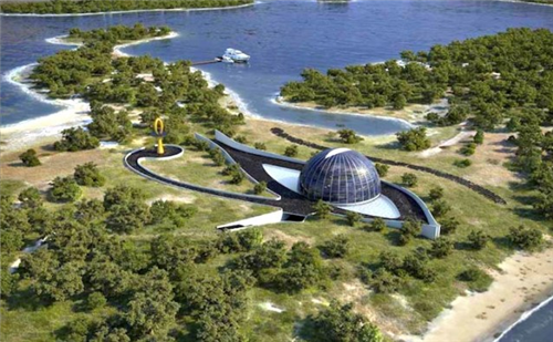 រូចហើយ។ភូមិគ្រឹះដែលនឹងត្រូវសាងសង់នេះ មានទំតាំងស្ថិតនៅលើកោះ Sadir នៃ