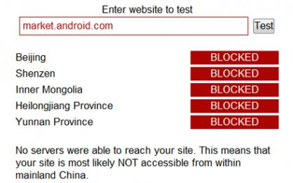 ធំៗចំនួនប្រាំនៅក្នុងប្រទេសចិនប៉ុន្តែលទ្ធផលបង្ហាញថា market.android.com ត្រូវបានហាម