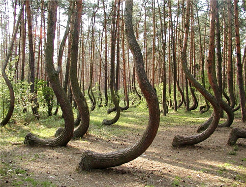 ដើមឈើទាំងនេះត្រូវបានគេប្រទះឃើញនៅតំបន់ Gryfino ភាគខាងជើងនៃប្រទេសប៉ូឡូញ។ មូលហេតុដែលដើមឈើទាំងនេះដុះរបៀបនេះមិនត្រូវបានគេដឹងឡើយ។