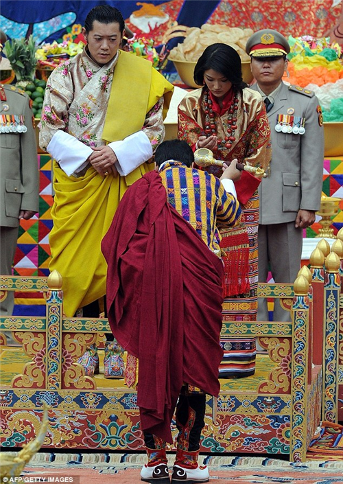 ព្រះអង្កម្ចាស់ Jigme Khesar Namgyel Wangchuck រៀបអភិសេកជាមួយព្រះនាង Jetsun Pema នាទីក្រុងបុរាណ Punakha នៃប្រទេសប៊ូតាន។ ព្រះនាង Jetsun Pema ជាបុត្រីរបស់