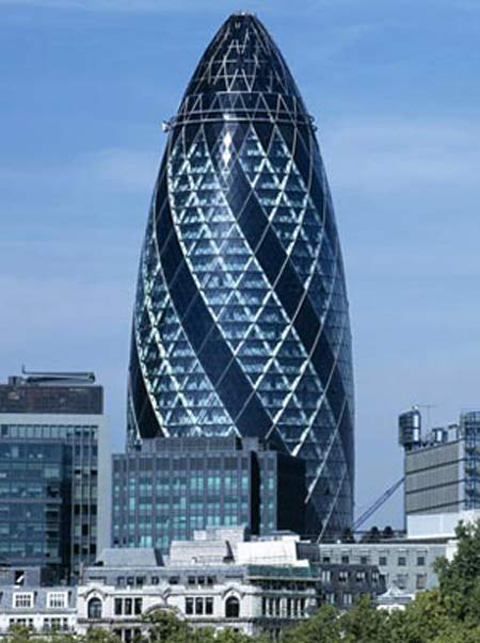អគារ Gherkin នៅក្រុងឡុងត្រូវបានដើកដំណើារការកាលពីឆ្នាំ២០០៤។អគារនេះ មាន