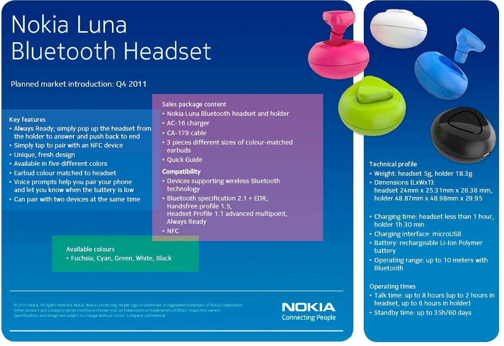 ក្នុងកិច្ចការបន្តពង្រីកឧបករណ៍បន្ថែម, Nokia ក៏បានបង្ហាញកាស Nokia luna Bluetooth ដែល