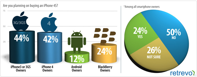មនុស្សដែលមានគំរោងបំរ៉ុងនឹងទិញ iPhone 4S គឺមានចំនួន ៤៤ភាគរយកំពុងតែប្រើ