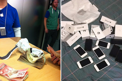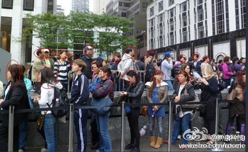 ចិនដូចគ្នារស់នៅប្រទេសក្រៅ)នៅទីនោះ ដើម្បីទៅតំរៀបជួរគ្នានៅមុខ Apple Store រង់ចាំ