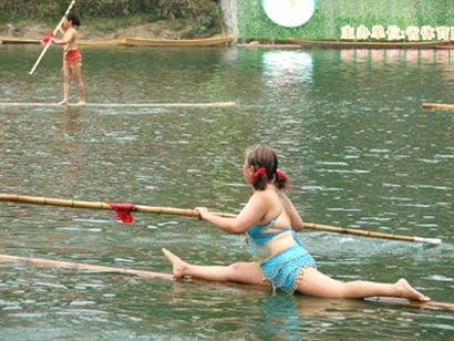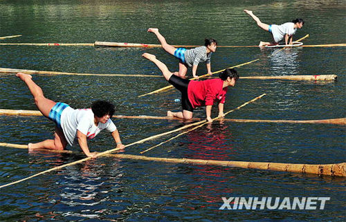 រូបគាត់បានយកដើមឫស្សីមកដាក់តំរៀបនៅលើទន្លេ Pinzhou ដើម្បីអោយអ្នកដែលបាន