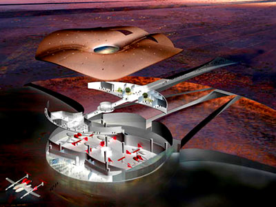 មាន អាវកាសយានដ្ឋាន ទីបញ្ជាការដ្ឋាន និងតំបន់ត្រៀមសម្រាប់ភ្ញៀវ។