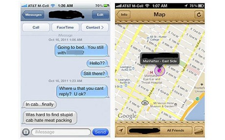 ទៀតថា លោកបានផ្ញើរសារសួរប្រពន្ធពីទីតាំងរបស់នាង ហើយនាងឆ្លើយតបថា នាងកំពុងនៅជាមួយមិត្តភក្តិនៅផ្លូវលេខ ១០ នៃតំបន់ Manthattan។