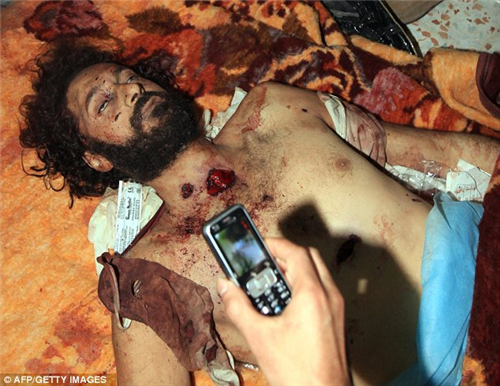 ស្ថានីយទូរទស្សន៍របស់រដ្ឋាភិបាលលីប៊ីថ្មី បានចាក់ផ្សាយរូបភាព Mutassim Gaddafi ដែលត្រូវបានគេជឿជាក់ថា Mutassim Gaddafi ត្រូវបានគេបញ្ជួនទៅកាន់មន្ទីរពេទ្យ ហើយក្រោយមកលោក ត្រូវបានគេបាញ់ចំក និង ក្បាល។
