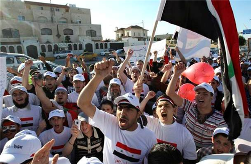 លោកប្រធានាធិបតិ Al-Assad ដោយពួកគេស្រែកជ័យឃោសន៍ថា �ពេលនេះដល់វេណ