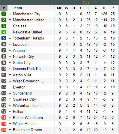តារាងពិន្ទុ English Premier League