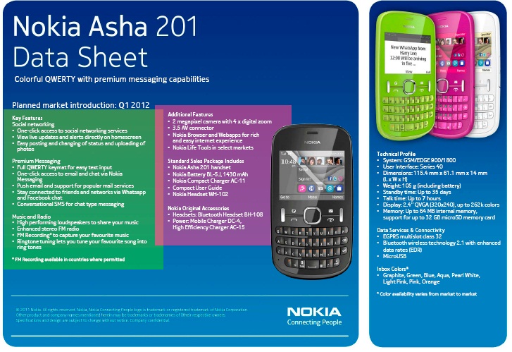 អឺរ៉ូ (មិនទាន់គិតពន្ធ) Nokia Asha 201