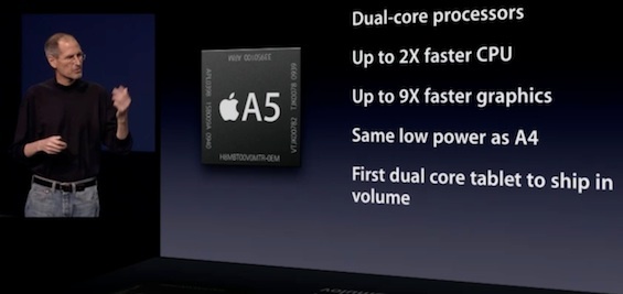 ដំបូងមួយសំរាប់ Apple គឺ A4 ។ បន្ទាប់មកទៀតក្រុមហ៊ុនបានបន្តទិញ Intrinsity ជាក្រុមហ៊ុន