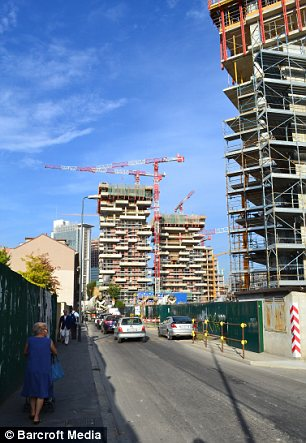 រូបភាពដែលបង្ហាញពីអគារ Bosco Verticale ដែលកំពុងតែត្រូវបានសាងសង់។