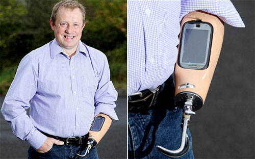ដែលមានទូរស័ព្ទ Smartphone ភ្ជាប់នៅលើដៃសិប្បនិម្មិតរបស់ខ្លួន។