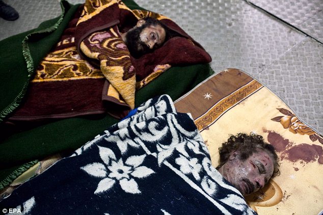 សាកសពរបស់លោកកាដាហ្វី និង Mutassim Gaddafi ត្រូវបានដាក់ទន្ទឹមនិងគ្នា។