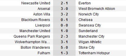 តារាងលទ្ធផលការប្រកួត English Premier League