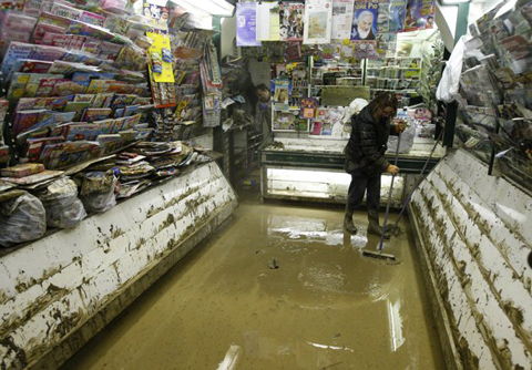 ហាងផឹកស៊ីមួយកន្លែងត្រូវបានគ្របដណ្ដប់ដោយល្បប់យ៉ាងក្រាសបន្ទាប់ពីទឹកជំនន់