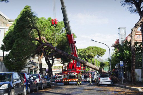 ទឹកជំនន់កំពុងកើនឡើងនៅតាមដងវិថីក្នុងក្រុង Genoa ធ្វើឱ្យដើមឈើជាច្រើនដើមបាន