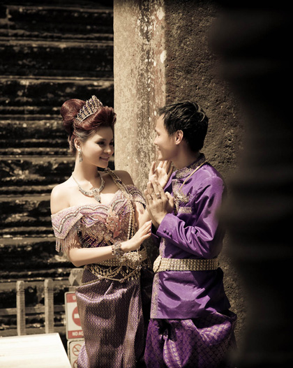 ឈ្មោះ វ៉ូ ធូ ភឿង និងកូនកម្លោះត្រិន ថាញ់ ហាយ ជាអ្នកជំនួញ ដែលត្រូវបានថតក្នុងបេតិកភ័ណ្ឌអង្គវត្ត។ ។ ម្តាយរបស់កូនកម្លោះគឺជនជាតិខ្មែរហើយឪពុកគាត់ជនជាតិវៀតណាម។
