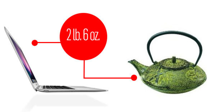 MacBook Air ១១អ៊ីង មានទំងន់ ១,១គីឡូក្រាម ប្រហាក់ប្រហែលគ្នានឹងកំសៀវតែមួយដែល