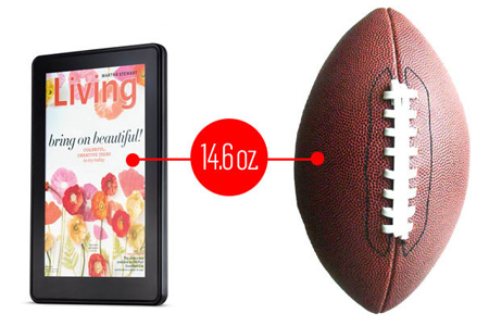 ជាមួយទំងន់ ៤១០ក្រាម , Kindle Fire មានទំងន់ស្មើនឹងបាល់អោបមួយ