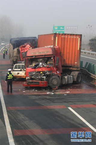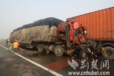 ដែលបានបុកបន្ដបន្ទុយគ្នានៅក្នុងផ្សែងអ័ព្ទក្រាស ដែលស្ថិតក្នុងភាគកណ្ដាលនៃខេត្ត Hubei