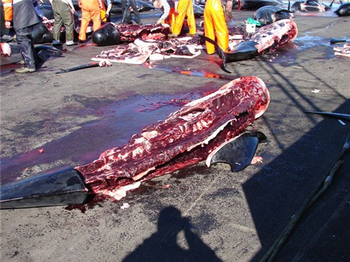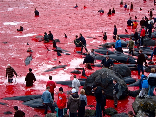 ប្រមាញ់ត្រីបាឡែនបានយ៉ាងច្រើនក្បាល ជាហេតុធើ្វអោយផ្ទៃសមុទ្រប្រែពណ៌ ពីពណ៌