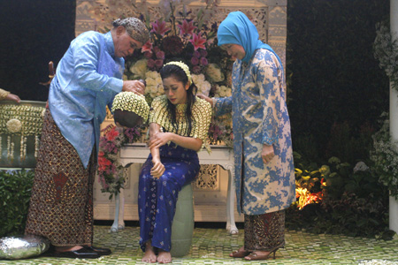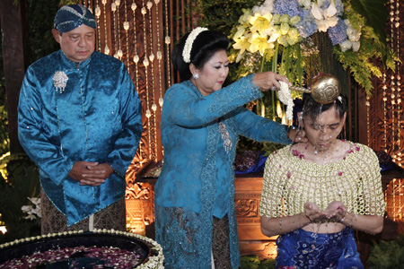ខាងជើង Java។ ក្នុងរូបថតនេះ កូនកំលោះយកដៃប៉ះថ្ងាស់កូនក្រមុំ ខណៈដែលប្រធានា