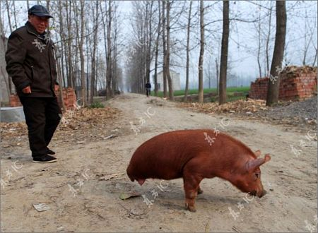 នៅប្រទេសចិន ៖ មានជ្រូកមួយក្បាល ពិការជើងក្រោយទាំង ២ ពីកំណើត ប៉ុន្ដែវានៅតែ