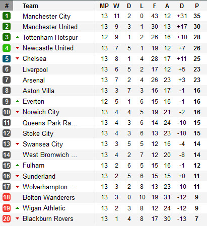 តារាងលំដាប់ពិន្ទុក្របខណ្ឌ English Premier League