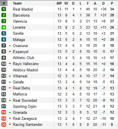 តារាងលំដាប់ពិន្ទុក្របខណ្ឌ Spain La Liga