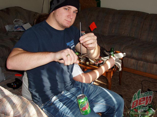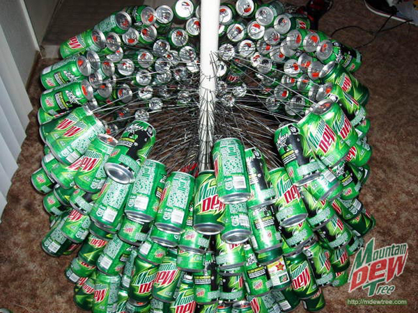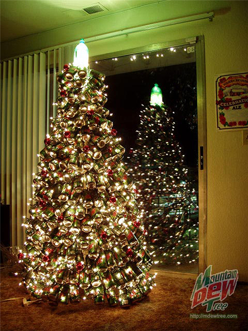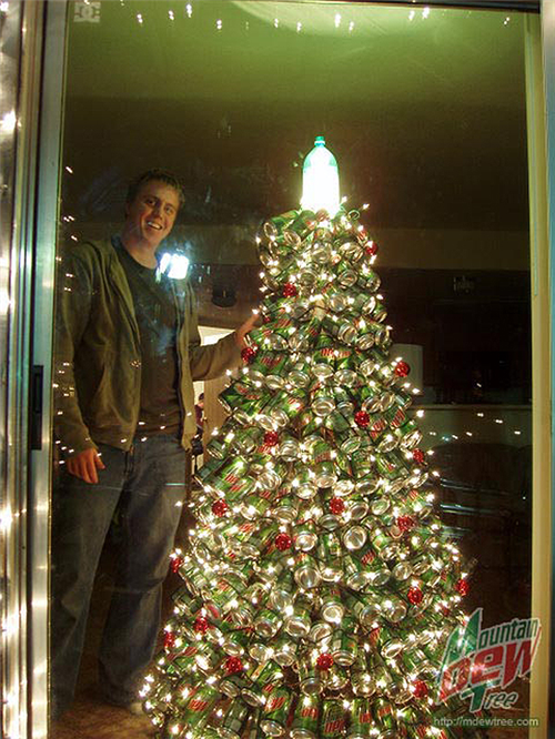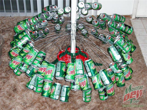 ដើមឈើសំរាប់ថៃ្ងណូអែលនេះត្រូវបានធើ្វឡើងអំពីសំបកកំប៉ុងចំនួន៤០០ ដោយរូបគាត់បានផឹកវាអស់មួយថៃ្ង4កំប៉ុង និងចំនាយអស់រយៈពេលបីខែ។