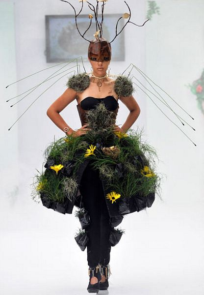 នៅក្នុងពិធីបង្ហាញម៉ូដ Biofashion Habitat ដ៏ស្រស់ចម្លែកនេះ ក្រុមអ្នករចនាបានប្រើប្រាស់