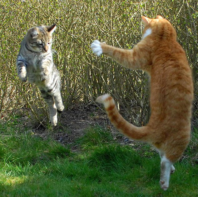 ដោយឡែកសូមក្រឡេកទៅមើលសត្វឆ្មាមួយគូខាងក្រោមនេះវិញដែលពួកវាកំពុងតែប្រយុទ្ធ