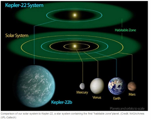 ភព Kepler 22b មានទំហំធំជាងផែនដី ២,៤ដង និងគោចរជុំវិញផ្កាយមេរបស់វាដែលមាន