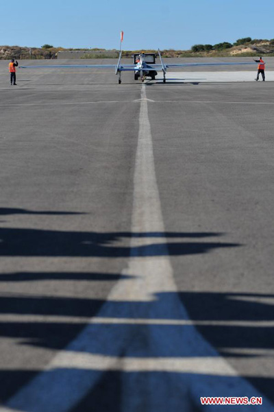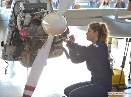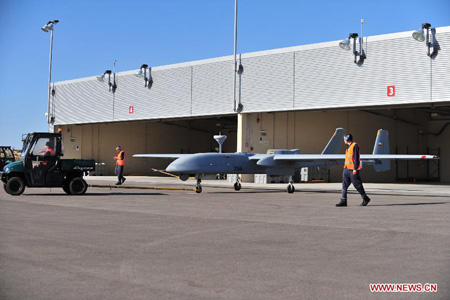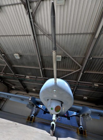 បានអនុញ្ញាតអោយក្រុមអ្នកយកព័ត៌មានថតរូបនៅឯឃ្លាំងទុកយន្ដហោះ Heron UAV ៦