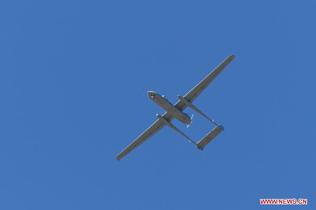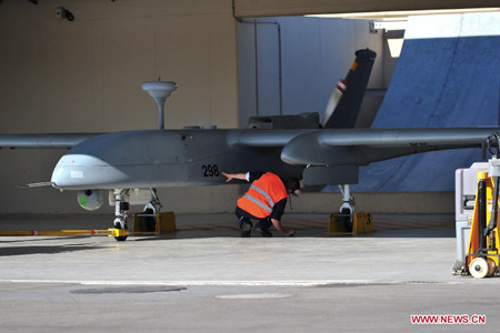 យន្ដហោះគ្មានអ្នកបើកបរ Heron មួយគ្រឿង ដែលត្រូវបានផលិតឡើងនៅឯមូលដ្ឋានទ័ព