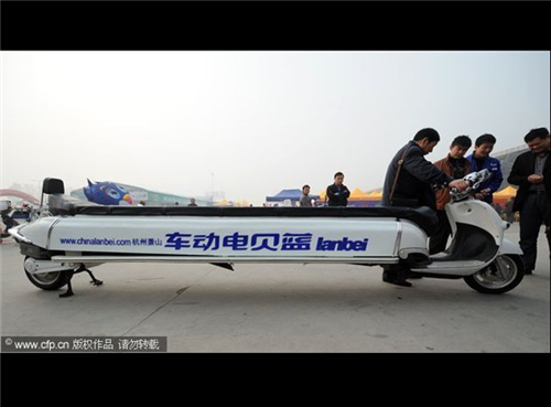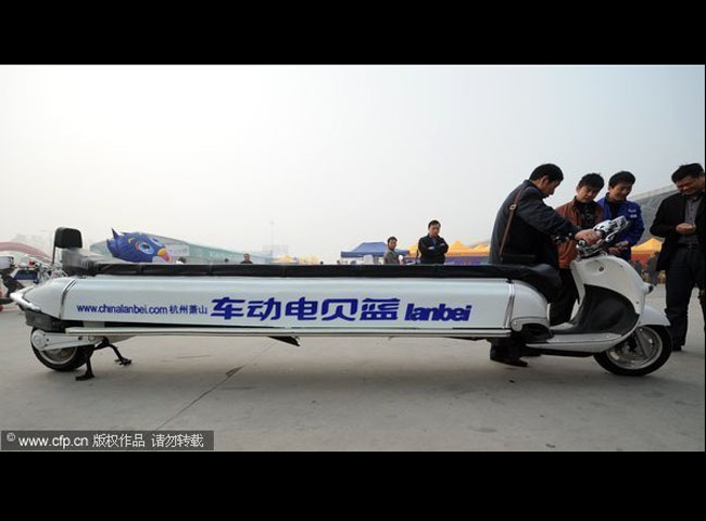 ក្នុងពិធីតាំងពិព័ណ៌នៅក្រុង Hefei Shi ខេត្ត An-Hui ម៉ូដែលម៉ូតូ Auto ដែលមានដងខ្លួនវែង