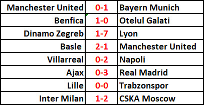 លទ្ធផលការប្រកួតបាល់ទាត់អ៊ឺរ៉ុប UEFA Champion League