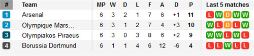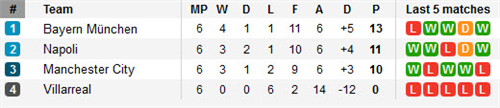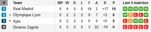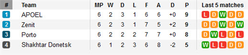 តារាងពិន្ទុតាមពូលក្នុងបាល់ទាត់អ៊ឺរ៉ុប UEFA Champion League