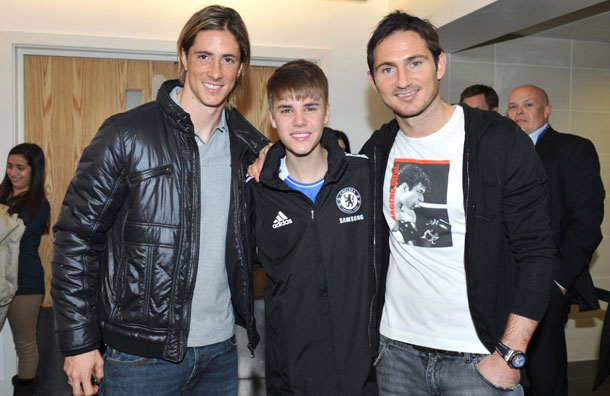 Left to Right: Fernando Torres, Justin Bieber, Frank Lampard
