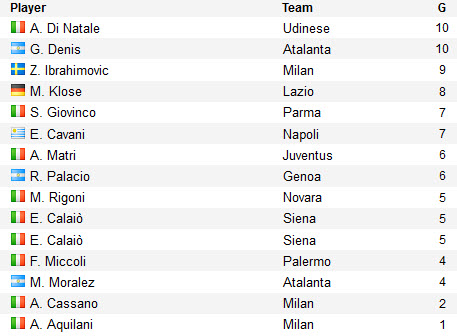 តារាង Top Scorers ក្នុងក្របខណ្ឌបាល់ទាត់អ៊ីតាលី Serie A